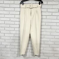 Zara High Waisted Belted Pants Ecru Fabric Covered Belt - Size M | eBay