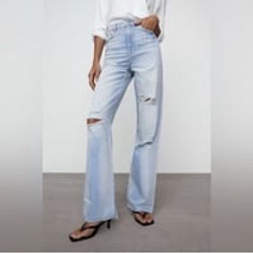 Zara Denim Distressed Mid Rise Super Wide Leg Ripped Jeans · NWT · $50 $70 · Size: 2 Zara · whatsminesyours · NWOT Zara Women’s Low Rise Flare Black Denim Jeans Size 4 · $30 $70 · Size: 4 Zara · paysia_mitchell · Zara Light Blue Distressed Flare Jeans ·