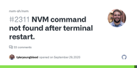 I was having the same problem after exiting the terminal the nvm command was not found. So to fix this you have to add