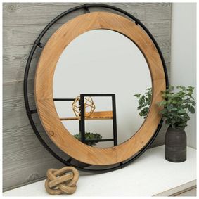 Introduce quaint and functional decor like this Round Wood Wall Mirror into your home! Its simple wood grain frame allows it to fit in with a variety of home styles, from coastal, to French country, to industrial. Hang this versatile mirror in your living room or bedroom to add a focal point that opens up your space's interior!