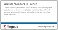 July 16, 2019 - Learning numbers in French is actually just a question of memorisation. If you can learn the first 16 numbers by heart, after that it's just a case of adding up numbers or multiplying them. It might sound a bit complicated at first but in reality, it's not. Use the audio below to help you imitate