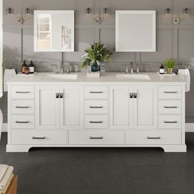 In Stock84 Inch White Double Sink Bathroom Vanity with Choice of No Top$2,962.00$2,279.00SKU: UVLHLD342284DA84 · For maximum space and to make a definite statement, 84 inch bathroom vanities are a perfect choice. They are available in several colors and styles to fit any space and can even be customized with unique hardware and countertop selections to create a one-of-a-kind design that speaks to your tastes.