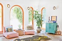 Moved in with my bf last year, and have been experimenting since then, but I’m always feeling like something is not quite right. He had the vintage rug that I love, and we bought the couch but I second guess it everyday. We’re artist types so spend a lot of time at home, and this is kind of the catch all office as well, but I feel distracted/unsatisfied with the space. Any suggestions would be appreciated! I’ve thought of -getting a bigger media console -replacing the two stacked side tables by the windows with an actual arm chair/reading book (it’s dead space my cat just uses now) -making the wall by the keyboard more interesting/adding some shelves