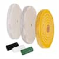 Introducing the 6 Inch Buffing Wheel and Polishing Compound Kit by POWERTEC. This complete buffing and polishing set serves as a vital component to many of your standard and advanced restoration applications. It is designed to provide you with an assortment of versatile polishing tools to help you buff and restore old, dull and rusty items back to new. //Contains 3 Multi-Purpose Buffing Wheels// Yellow: 40 ply : 6 in. : Treated : Allows for aggressive cutting action and coarse buffing. Loose Cotton: 40 ply : 6 in. : Loosely stitched for soft, non-abrasive, ultra fine polishing. White Cotton: 4
