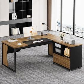 Tribesigns 63-inche L Shaped Desk with Lateral Cabient, 2 piece Home Office Executive Desk with Drawer Shelf
