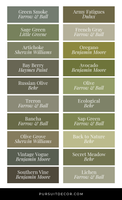 This is an elegant dark green olive that pairs beautifully with plum accents. Trim this hue in off-white painted trim.