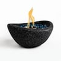 Introducing a sleek Tabletop Fire Pit in striking black, ideal for indoor and outdoor use. Crafted from high-quality concrete, this portable fire pit offers modern elegance and cozy ambiance. Designed for personal enjoyment, it's smokeless and hassle-free. The minimalist design complements any decor, and its compact size suits smaller spaces. Made of durable concrete, it ensures longevity and stability. It includes stainless steel cup and lid, blue glass beads, and arrives securely packed for mail order. Just add your preferred ethanol fuel (gel or liquid, not included) and ignite for a captiv