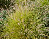 Also known as Fountain Grass, Pennisetum alopecuroides prefers sun and moderately fertile, well-drained soil. It will tolerate clay and sandy soil. Pennisetum 'Piglet' is drought tolerant and is more winter hardy than P