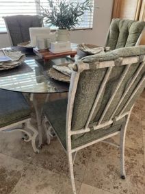 To mimic the flow of a round table, choose chairs with slightly rounded backs. Using our 3D Room Planner, you can play with different chairs and tables to see what looks best in your space. If you already have a table you like and just need new chairs, try our EA inHome app and see what our furniture will look like in your space through augmented reality.