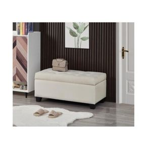 Plush yet practical, this tufted storage bench provides a variety of home décor options. Use it as a coffee table ottoman in a living room to serve guests. Position it in a family room to relax feet on after a long day. Place it at the end of the bed bench to hold pillows and blankets. With straight wood legs in a dark walnut finish, versatile linen-like fabric, and a hinged lid for easy access, this storage bench is a premium addition to any home.