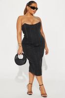 Fashion Nova Hottie Denim Midi Dress in Curve Plus 1X.Black Gorgeous Dress! Scoop Neck. Corset Waist with boning. Seaming Detail. Back Zipper. A Lil Stretch.