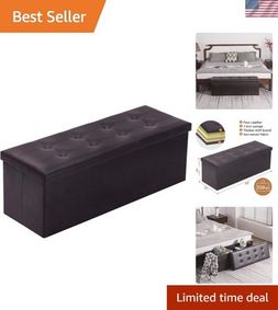 Luxe Dark Storage: 51" Brown Faux Leather Tufted Ottoman Bench