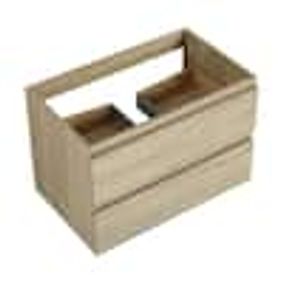 Featuring a dark blue and brown oak finish, this wall-mounted piece boasts ample drawer(s) with natural hardwood handles, with plenty of room to store your essentials in style. A pristine white countertop and square vessel sink(s) create a sense of contrast, which brings simple elegance to your bathroom space. Dayden transforms contemporary trends by blending simplicity, comfort, and luxury, with smooth lines and surfaces. · Product Details: · Expertly crafted from multi-layer wood veneer on drawer fronts. · Water-Resistant High Density Hardwood with 9 layers of Hardwood Birch Glued Together a
