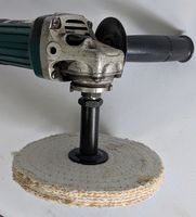 Extends the shaft of your bench grinder by about 3.5" and allows more room for maneuvering parts while buffing