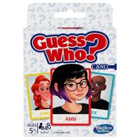 Number of Players2Playtime15-30 MinSuggested Ages5+Designer(s)N/APublisherHasbroA twist on Guess Who? gameplay with cards! In this version of the Guess Who? game, players will lay out their Character cards in front of them and pick a Mystery Character from the Mystery deck. Then each player asks their opponent a yes or no question, and the answer gets them closer to who is their opponent's Mystery card. When they think they know who their opponent's Mystery Character is, players will make a guess. A correct guess will make that player the winner. If they guess incorrectly, that player will los
