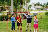 This was a really fun party activity for the kids! Take a look at our DIY magic wizard wand tutorial for more details on how to make your own, and where to get the supplies. After the lesson, we let the kids unwind with a fun game of Quidditch. We made the goals from smaller hula hoops attached to inexpensive tomato stakes. We used the quaffle that Little Jo bought when we visited The Wizarding World of Harry Potter, and we provided some ordinary straw brooms for the kids to "ride".