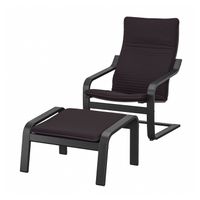 POÄNG Armchair and ottoman - black-brown/Knisa black. 10-year limited warranty. Read about the terms in the limited warranty brochure. A variety of seat cushion designs makes it easy to change the look of your POÄNG chair and your living room. The high back provides good support for your neck.