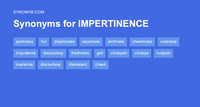 Find 295 different ways to say IMPERTINENCE, along with antonyms, related words, and example sentences at Thesaurus.com.