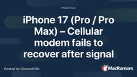 I’d like to report and compare notes on a reproducible cellular issue I’ve been able to document on the iPhone 17 series, which has persisted across multiple iOS versions up to 26.2. This is not a signal coverage complaint, and I’m not talking about temporary slowdowns. This is a failure to... More on forums.macrumors.com