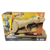 This Jurassic World Tyrannosaurus rex dinosaur figure has a DOUBLE CHOMP head action and sounds and is uniquely designed with removable tracking gear and a desert terrain design. • Double Chomp! This Jurassic World T, rex dinosaur toy has a two-part head chomping action with sounds for exciting action play.• Unique look! Removable tracking gear and a desert terrain design distinguish this Tyrannosaurus rex figure. This edition of the fan-favourite species will elevate any collection.• Great gift! At about 19 inches long and more than 7 inches tall, this posable figure is ready to star in actio