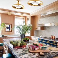 December 27, 2021 - The all-white kitchen may be a classic, but it was an endangered species in the design world in 2021. In its place: color, glamour, and razzle-dazzle details from coats of emerald lacquer to hand-poured terrazzo floors and custom chandeliers. If we had to psychoanalyze the trend, we’d conjecture that months (turning into years) of time spent at home—and home kitchens where chilly ranges were suddenly fired up to produce everything from sourdough loaves to homemade gourmet meals—might have inspired many to up the ante on the design of the most used space in the house.