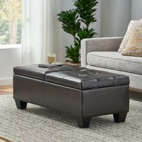 Murray Rectangle Double Flip Leather Storage Ottoman Coffee Table – GDFStudio