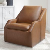 Leather swivel chair: They look your typical leather chair up top, but they have a base that lets you take them for a spin. Leather armchair: Arm style is a big factor is setting the vibe. A track-arm leather chair tends to be more clean-lined and modern. A roll-arm leather accent chair promotes ...