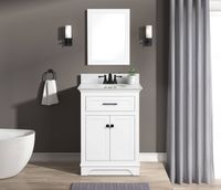 Style Selections Dolton 24-in Light Natural Oak Undermount Single Sink Bathroom Vanity with White Engineered Marble Top (Mirror Included) Introducing the 24-inch Dolton single-basin bathroom vanity with matching mirror: a contemporary, compact design, ideal for your bathroom renovation requirements...