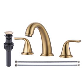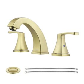 Bathroom Faucet Brushed Gold Widespread 2-handle WaterSense High-arc Residential Handle Bathroom Sink Faucet with Drain