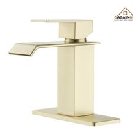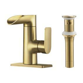Single Hole Brushed Gold Bathroom Faucet Brushed Gold Single hole 1-handle Waterfall Residential Handle Bathroom Sink Faucet with Deck Plate