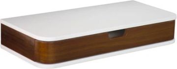 No problem. This hanging shelf can be used as a space saving vanity, desk, or just a spot to display plants and family photos. Made from solid rubberwood, it sports a walnut finish for a mid-century-inspired look.