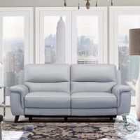 Lizette Dove Gray Genuine Leather Contemporary Power Reclining Sofa