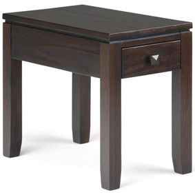 A rustic narrow side table crafted from solid acacia wood in distressed charcoal brown with a single drawer. ... A solid wood console table in a russet oak finish, perfect for narrow hallways or entryways.