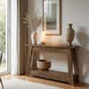 Also known as hall or sofa tables, they're long and narrow—ideal along the entryway or hallway wall. In the foyer, decorate one with a catchall for keys, a tray for mail and a decorative vase.