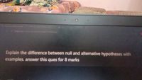 Explain the difference between null and alternative hypotheses with examples. Answer this question for 8 marks.