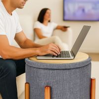 Living room ottomans in velvet, linen, or leather. Storage ottomans with hidden compartments to keep clutter away.