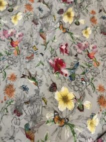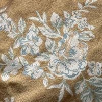 Beautiful fabric duvet with a blue floral pattern. Features light blue and white flowers on a brown background. Collaboration between Pottery Barn and Sabyasachi.