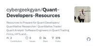 GitHub - cybergeekgyan/Quant-Developers-Resources: Resources to Prepare for Quant Developers/ Quantitative Researcher/ Quantitative Trader/ Quant Analyst/ Software Engineers in Quant Trading Firms, HFTs and Hedge Funds · GitHub