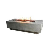 On cool days and chilly nights, this ultra-modern fire table draws you outdoors with the warmth, fascination and irresistibility of dancing flames. Balancing industrial and organic beauty, grey concrete shapes an elongated rectangle filled with black lava rocks. The molded, glass-reinforced concrete gives the propane-fueled outdoor fireplace strength and durability, with the propane tank fitting directly in the base for a clean look. The firepit's brass burner system uses fifteen jets to create rich, inviting flames everyone will want to gather around.Glass fiber-reinforced concrete. Steel inn
