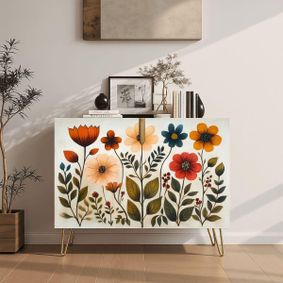 This stylish cabinet combines practicality with eye-catching design. The UV-printed pattern adds vibrant, long-lasting color, ensuring a bold look that won't fade. Making it a versatile addition to any room. ... This modern retro accent cabinet is a furniture that cleverly blends modern design with retro elements.