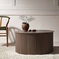 Featuring fluted base made from solid oak, the Maru Storage Coffee Table combines aesthetics and practicality.