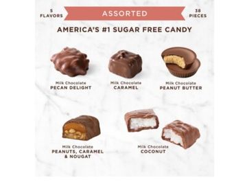 Multi-Flavor Sugar-Free Dark Chocolate ... bags. These chocolate candy assortments include dark chocolate-covered toffee squares, peanut butter cups, mint patties, and pecan delights....