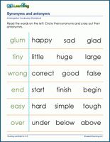 Try this synonyms worksheet with your third grader. This synonyms worksheet gets your child to find words with the same meanings.