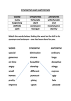 Synonyms, antonyms and homonyms: worksheets, handouts and printable exercises pdf
