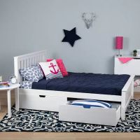 Our Matslen White Twin Bookcase Captains Bed is a must have for bedrooms needing storage space. It features a twin size bed with bookcase headboard. The headboard has 5 cubbies for storing books, an alarm clock or other small items... ... Our High Seas Navy Blue Twin Boat Bed gives your child ...