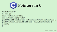 March 16, 2023 - Now, let us try to understand the above example. The line int varNumValue = 10; simply declares a variable with value 10. The second line that is a line next to it: int * ; is simply declared to store the address of the variable. The next code snippet, which is: ipointervarNumValue = &varNumValue, is used to hold the address of the variable. Now, we can simply get the value and use a pointer in our code snippet. ... Null Pointer: A null pointer is a type of pointer which points to nothing.