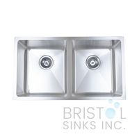 Bristol Sinks 18 gauge under-mount stainless steel kitchen sink with 20 millimetres radius corners. This sink features a lustrous soft brushed satin finish and 20 mm radius curved corners designed for easy cleaning, making this double bowl sink easy to clean while reflecting the latest trends in the