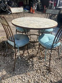 A Charming Vintage Painted Patio Set · £295 View similar · Garden Table Square Smoked Glass Top · £50 View similar · Set Of Two Round Outdoor Terrace Stone Top Tables, France, 1930s · £1,276 View similar · Experience Grandeur Outdoors With A French Style Zinc Top Metal Garden Table Seats 12 14 And Measures A Generous 280cm Xl!
