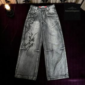 Fashion Men's Outfits Straight Wide Leg Pants Retro Loose Jeans High Street Black Baggy Ripped Jeans ... Y2K Jeans Men's Hip Hop Vintage Skull Embroidery Wash Denim Pants Gothic Straight Tube Loose Wide Leg Pants
